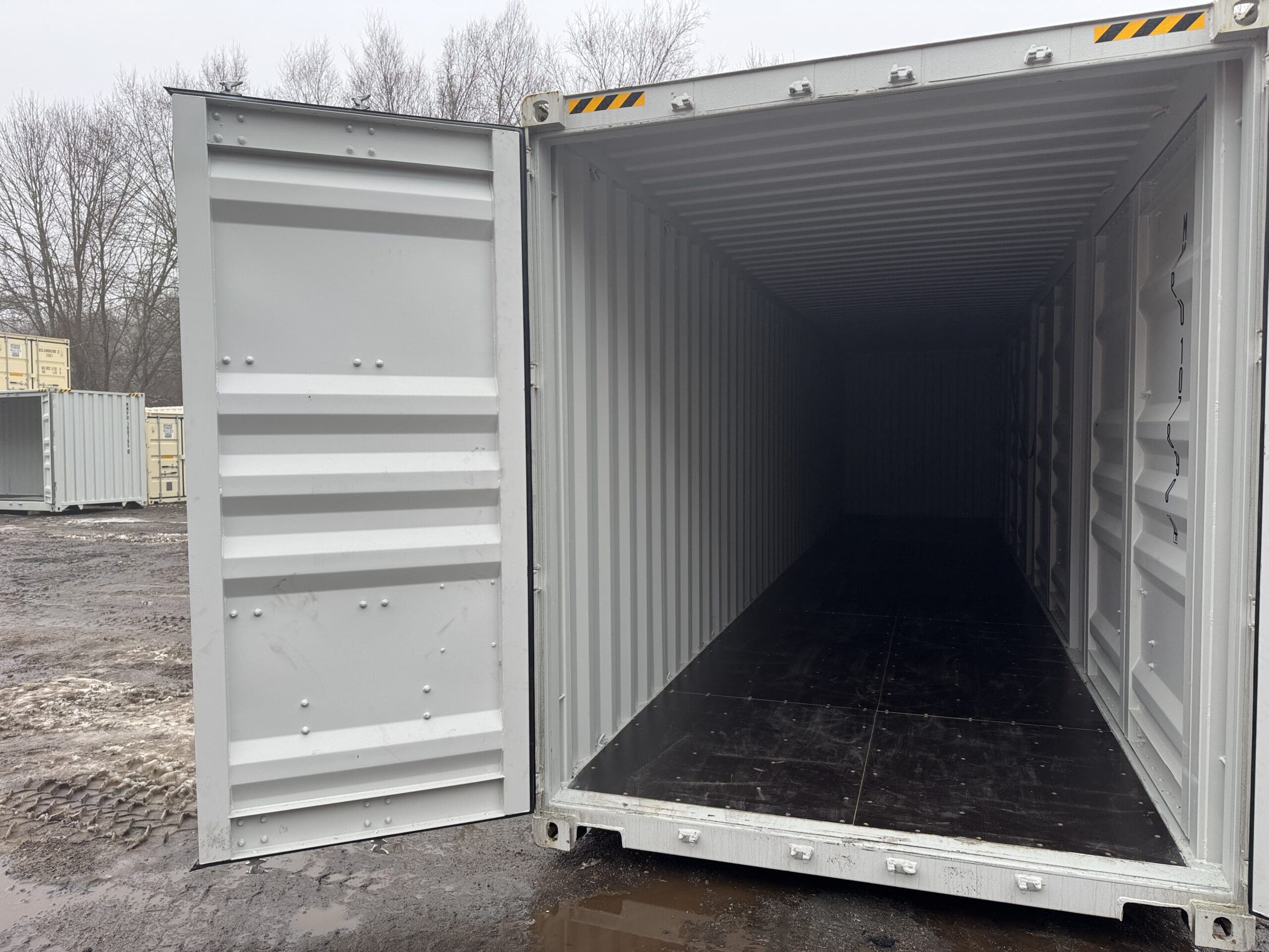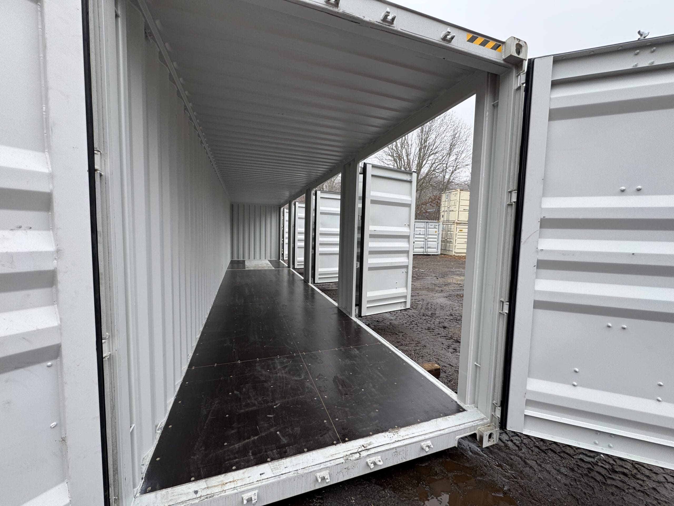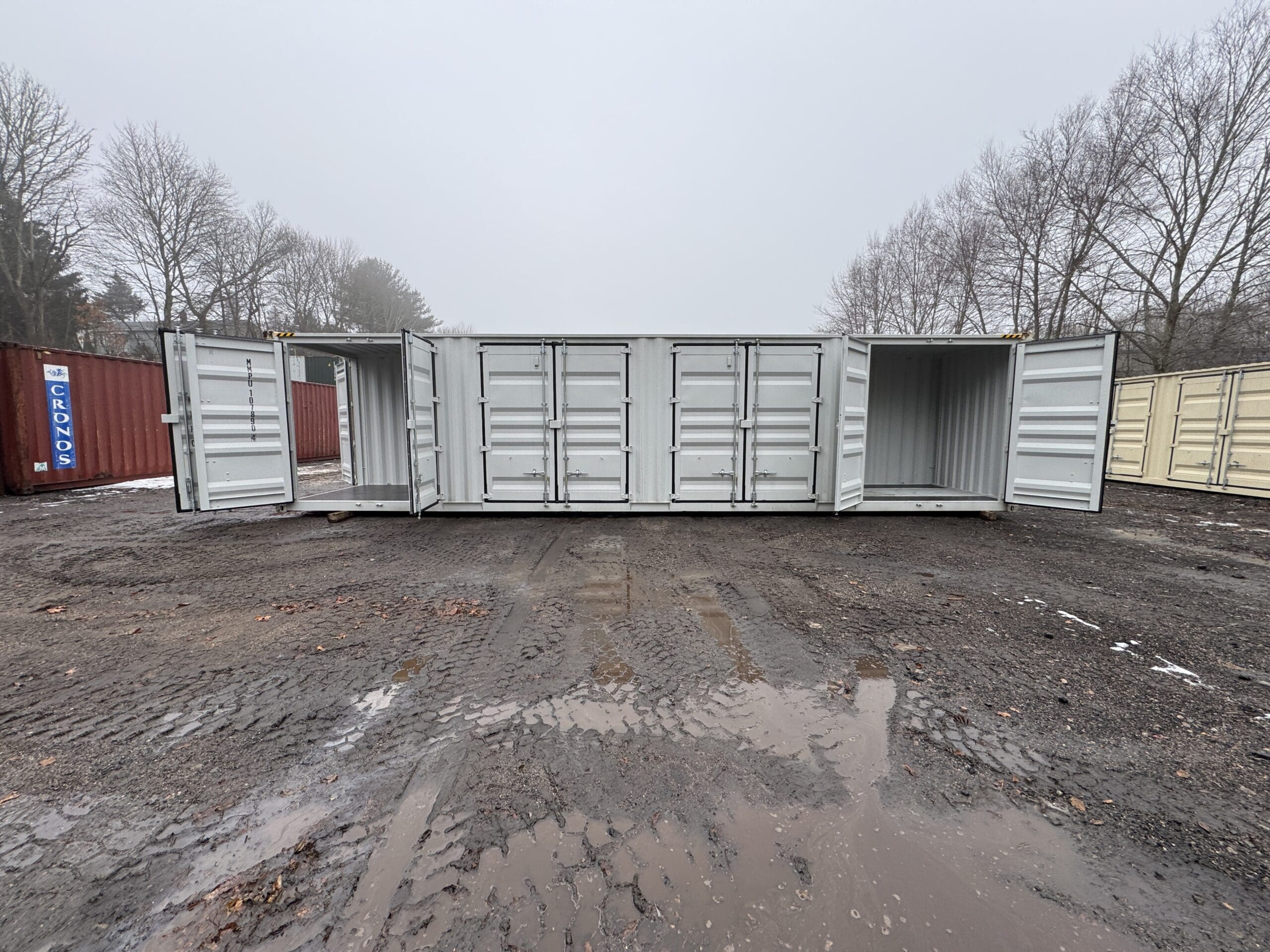 Be the first to review “40′ x 8′ x 9.5′ Tall -New *High Cube**FOUR SIDE DOOR OPENINGS** Shipping/Storage Container – Wind and Watertight – GRAY”