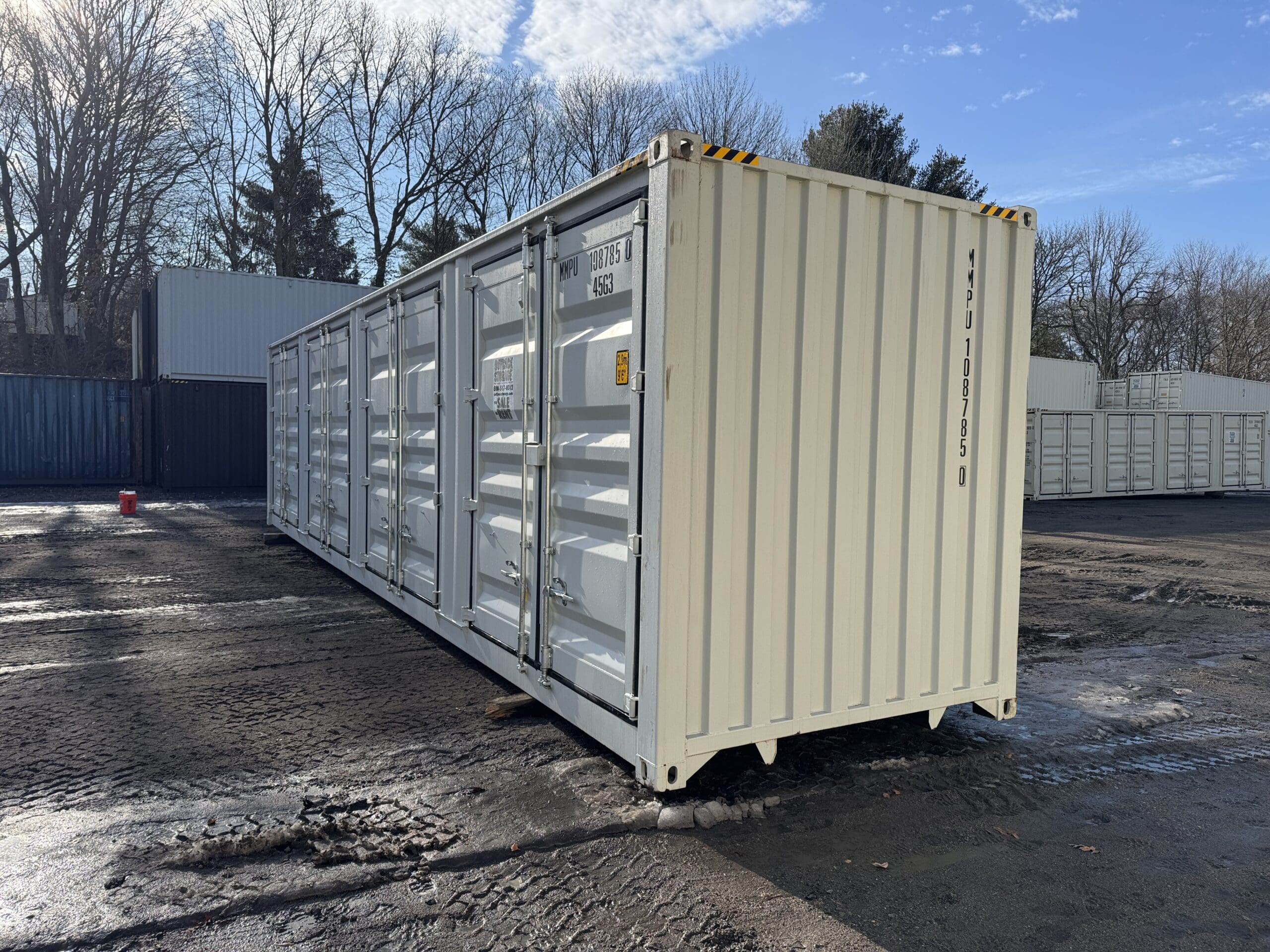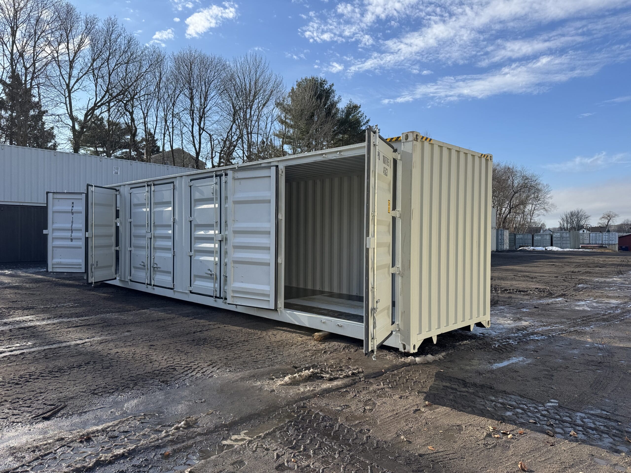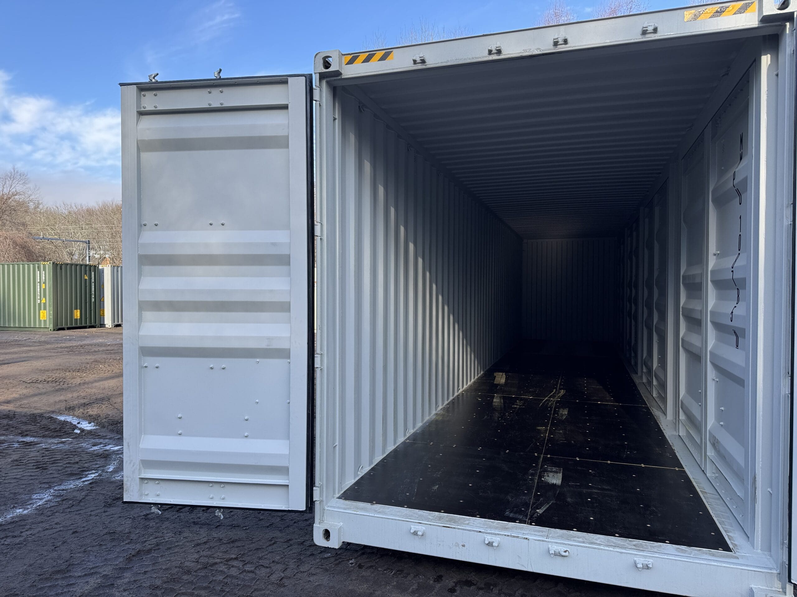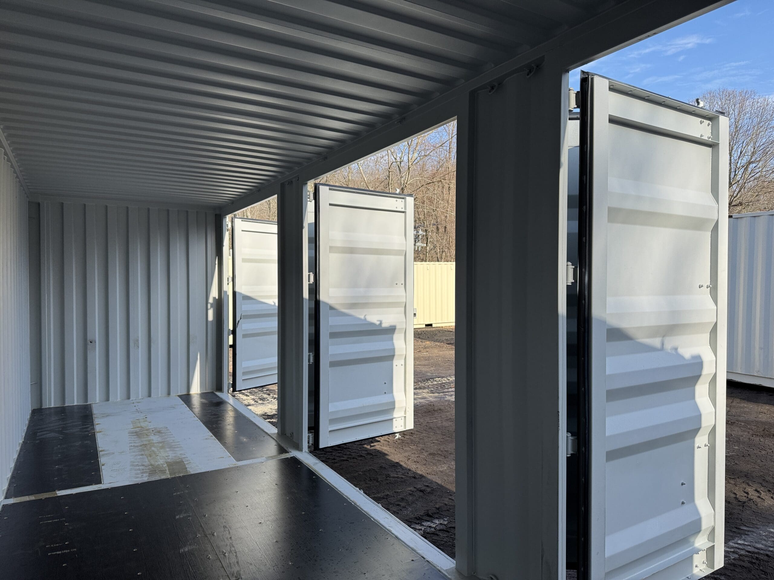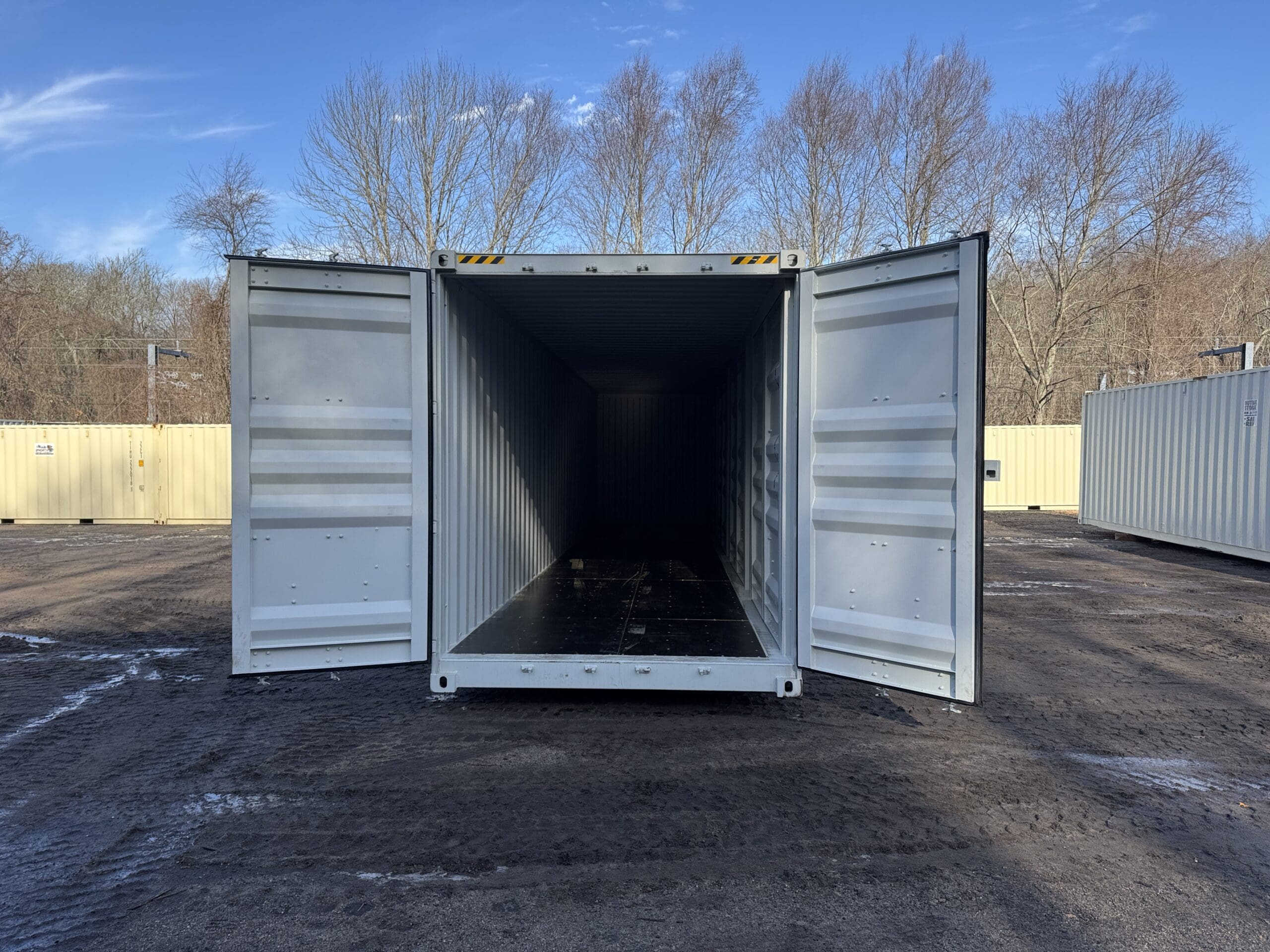 Be the first to review “40′ x 8′ x 9.5′ Tall -New *High Cube**FOUR SIDE DOOR OPENINGS** Shipping/Storage Container – Wind and Watertight – LT GRAY”